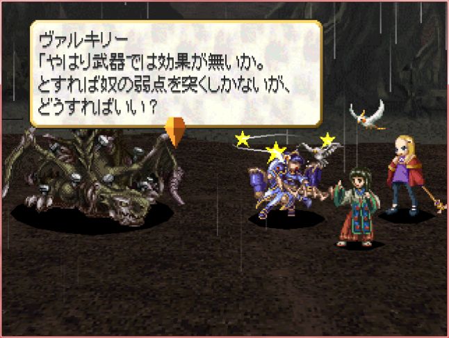 ネルソフのボス戦にて。気絶したまま冷静に分析するヴァルキリー。すごく…シュールです。