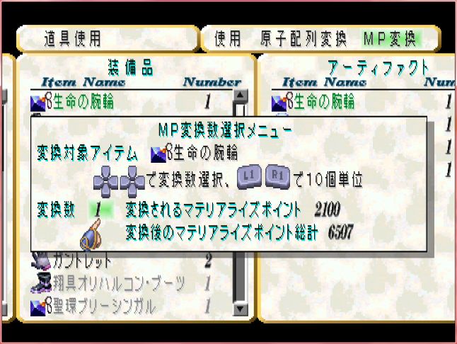 ボスがドロップする生命の腕輪は、速やかにMPに変換する。2100点。惜しくなんてないもんっ!