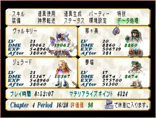 殆どの敵は、全体魔法を使うだけで、1ターンで蒸発していくのだが、敵の火力はかなり高い。もたもたしてると逆に瞬殺されかねないので、これは最善策というよりもむしろ、唯一策。