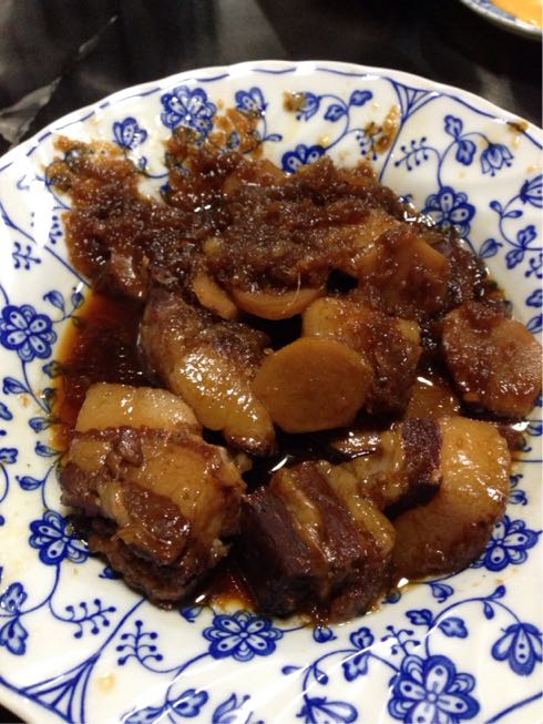 柔らかくなるよう、コーラをベースに使い、玉ねぎをすりおろしたものや、ちょっぴりカルピスなんかを入れたりしつつ、とろ火で煮詰め続けて数時間。ちょいと醤油が足りなかったか、随分甘くなってしまったけど、その方が好みなので良しとする。